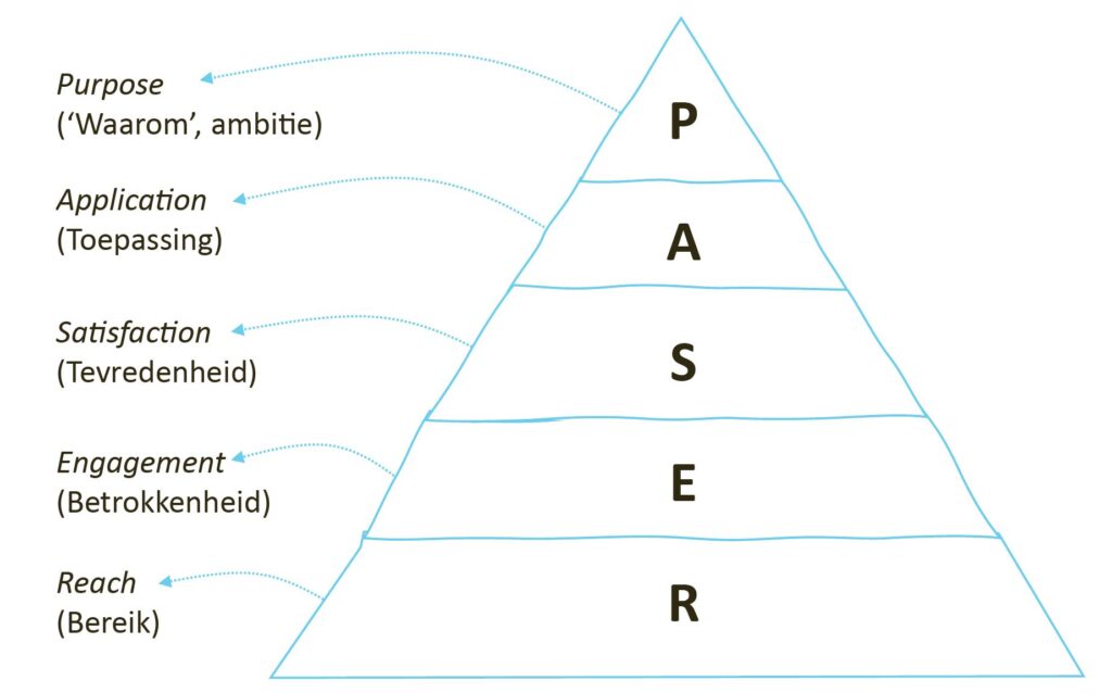 Het PASER-model (H. 9) zorgt ervoor dat de effectiviteit van een competentieontwikkelingsprogramma wordt gevolgd aan de hand van vijf prestatie-indicatoren: Purpose (Het waarom?), Application (Toepassing), Satisfaction (Tevredenheid), Engagement (Betrokkenheid) en Reach (Bereik).